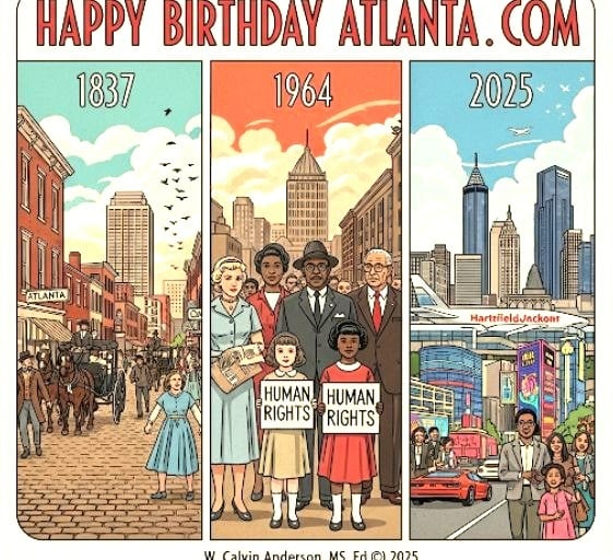 Vision Statement: Happy Birthday, Atlanta is a startup citywide, metro and greater Atlanta celebration of Atlanta's founding, resilience, and cultural, business and regional historic relationships and legacies. This initiative honors the city's journey from its origins as a railroad terminus to its current status as a global hub of commerce, civil rights, American and International City innovation. We are dedicated to commemorating Atlanta's 189th anniversary by recognizing its diverse communities, historic neighborhoods, and the visionary leaders—from its early Indigenous Muscogee (Creek) inhabitants contributing the civil engineering ready pathways for British engineers to overlay railroad tracks. We honor also from pioneer settlers to today’s dynamic and influential population—who have shaped its identity.